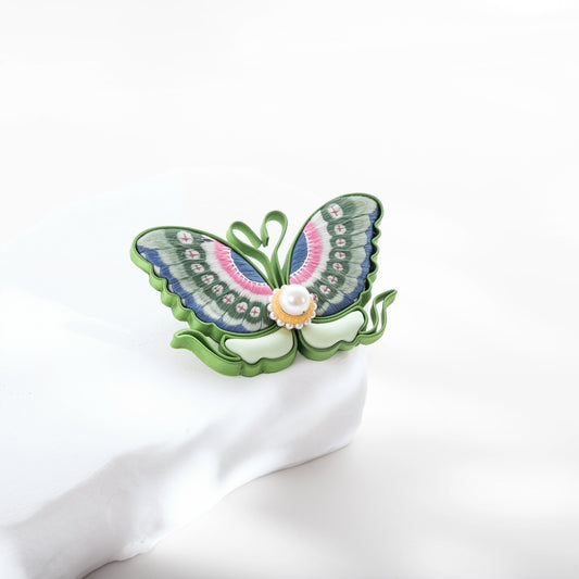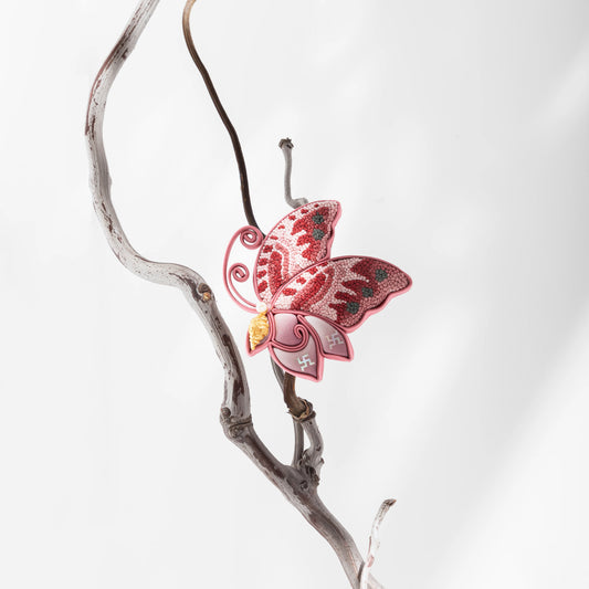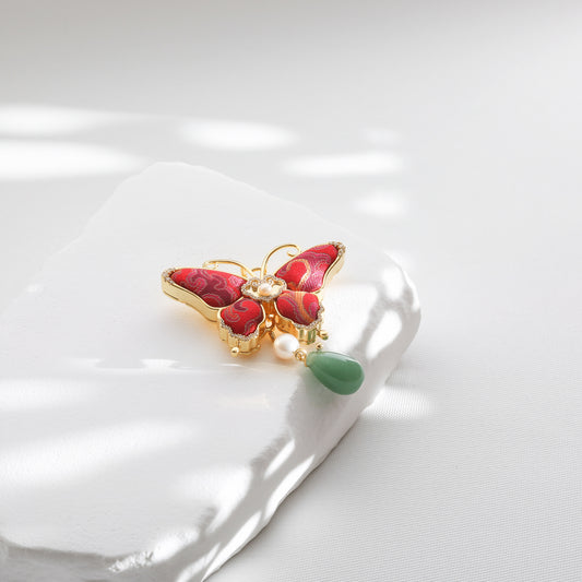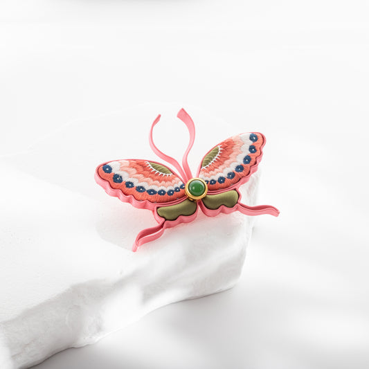 Butterfly Brooch with Pink Su Embroidery & Silk Frog Button