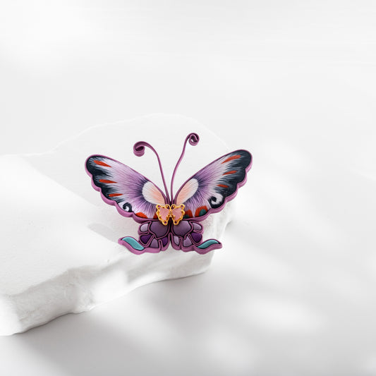 Hand-Embroidered Amethyst Silk Butterfly Brooch