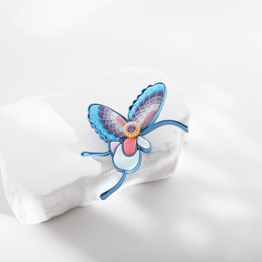 Hand-Embroidered Azure Silk Butterfly Brooch