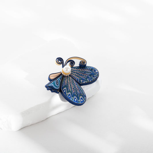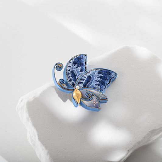 Butterfly Brooch with Blue Su Embroidery & Silk Frog Button