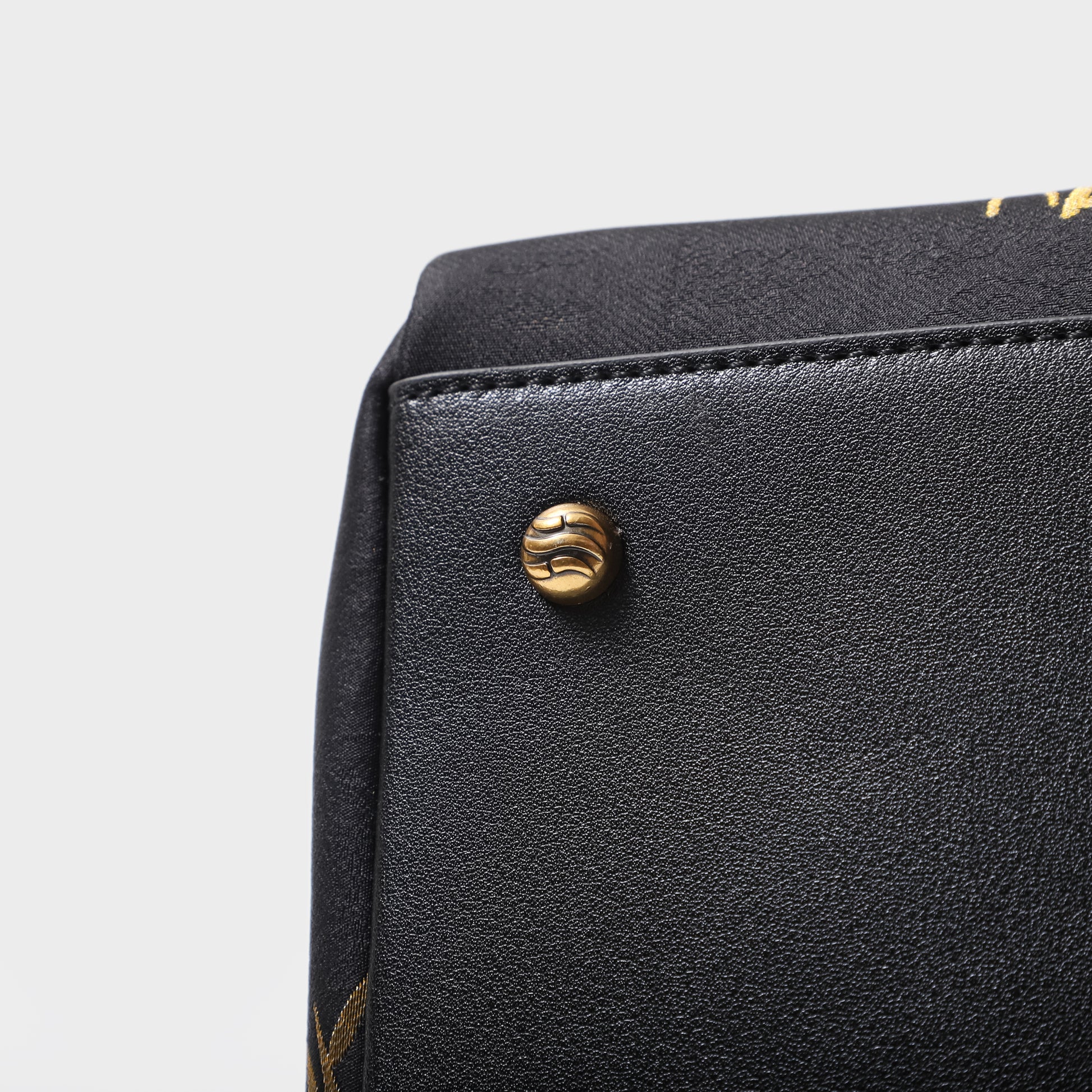 This handmade bag is a captivating work of art, meticulously crafted from top - grade Song brocade. Its sleek and structured bucket - like shape exudes a sense of modern elegance, while the deep black base color of the Song brocade serves as a perfect backdrop for the golden "Mingxuan Reflecting Shadow" pattern. The pattern, depicting delicate bamboo branches, adds an air of sophistication and a touch of natural beauty.