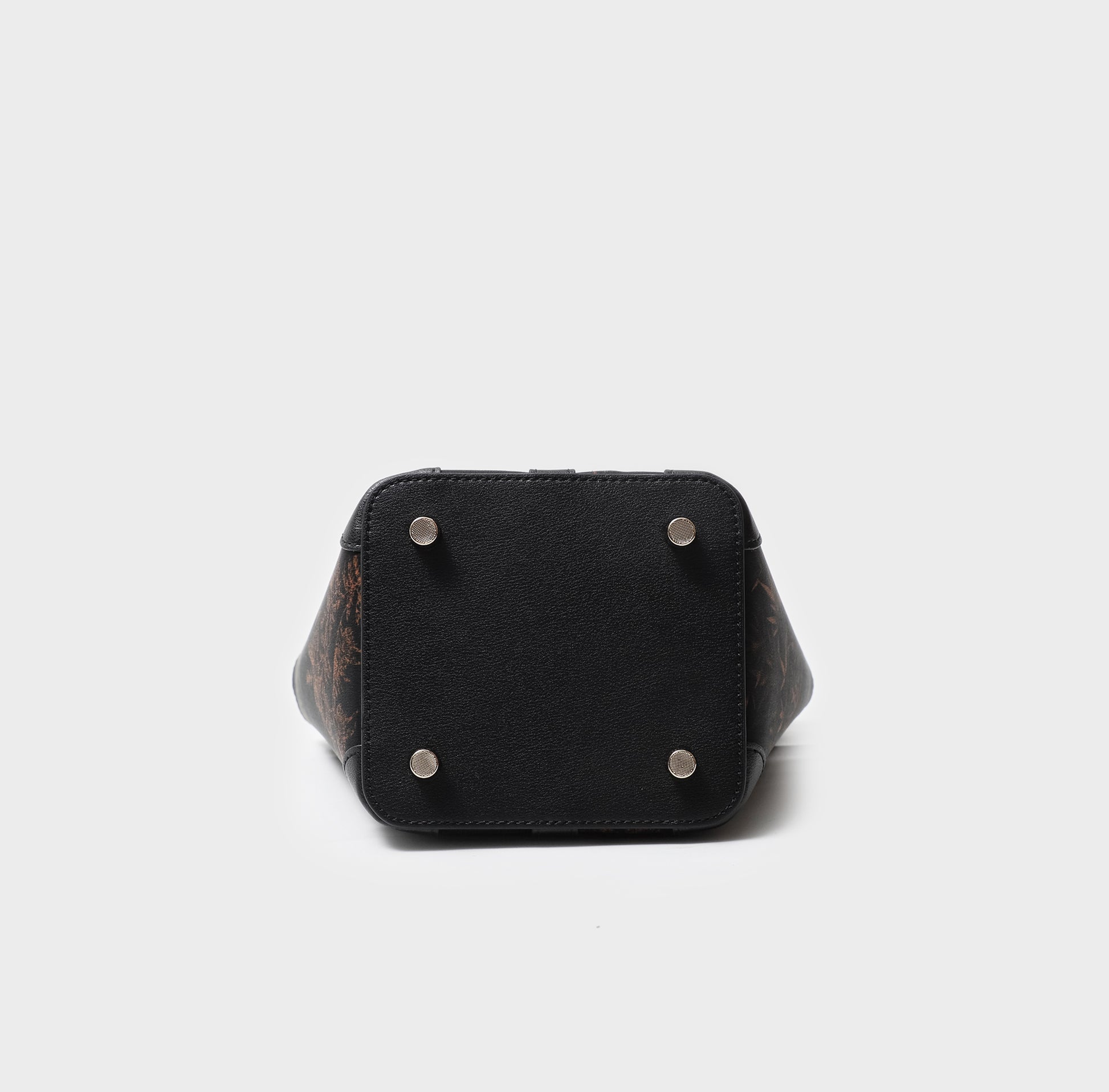 This handmade bag is a true work of art, crafted from premium Cloud - like Gauze, a fabric known for its unique production process and elegant texture. The deep black base color of the Cloud - like Gauze contrasts beautifully with the bronze - toned bamboo patterns, creating a visually striking and refined look.