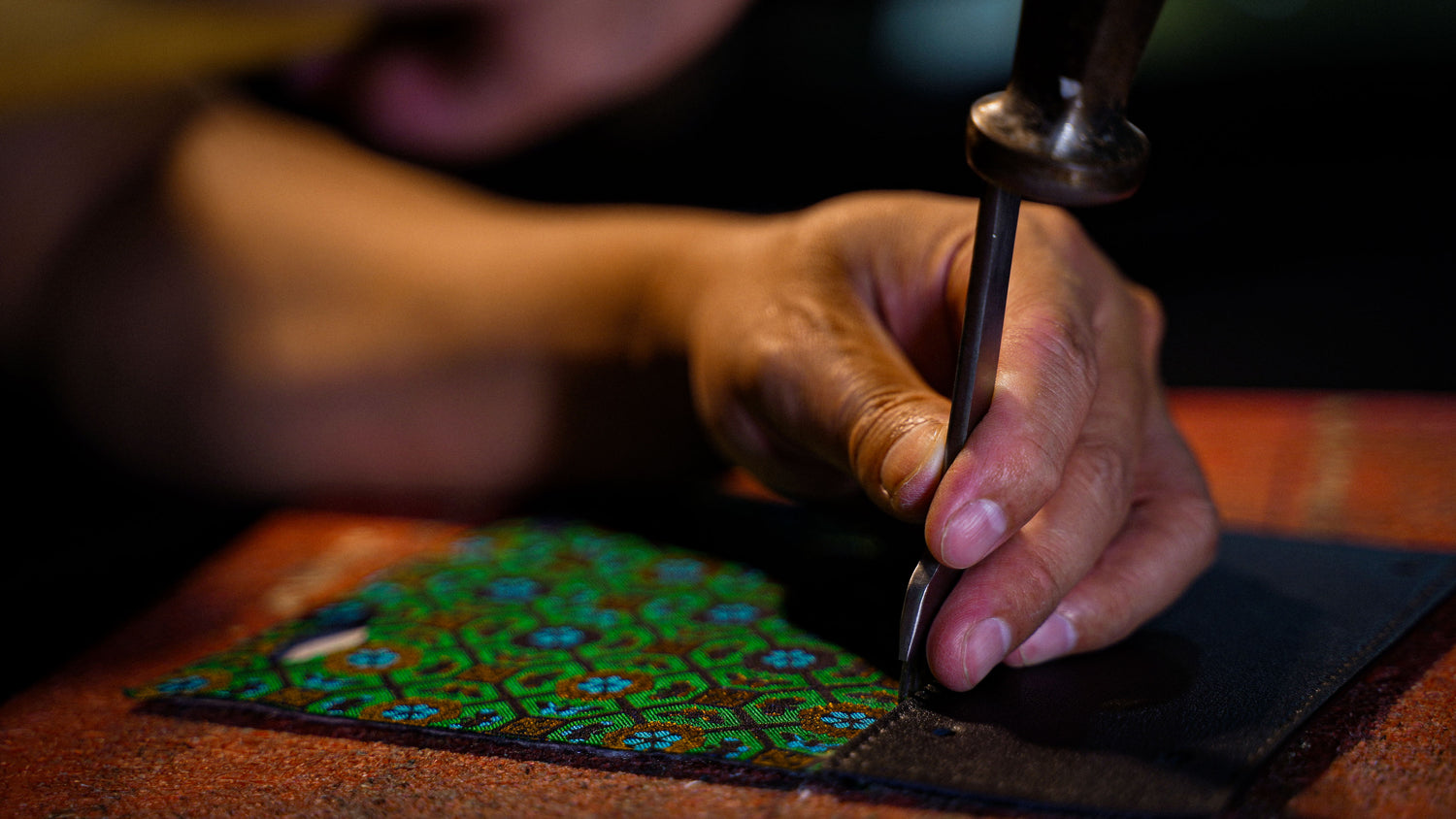 Crafted by heritage artisans using royal silk techniques—such as Xiangyun silk and Song brocade—and finished with premium cowhide.