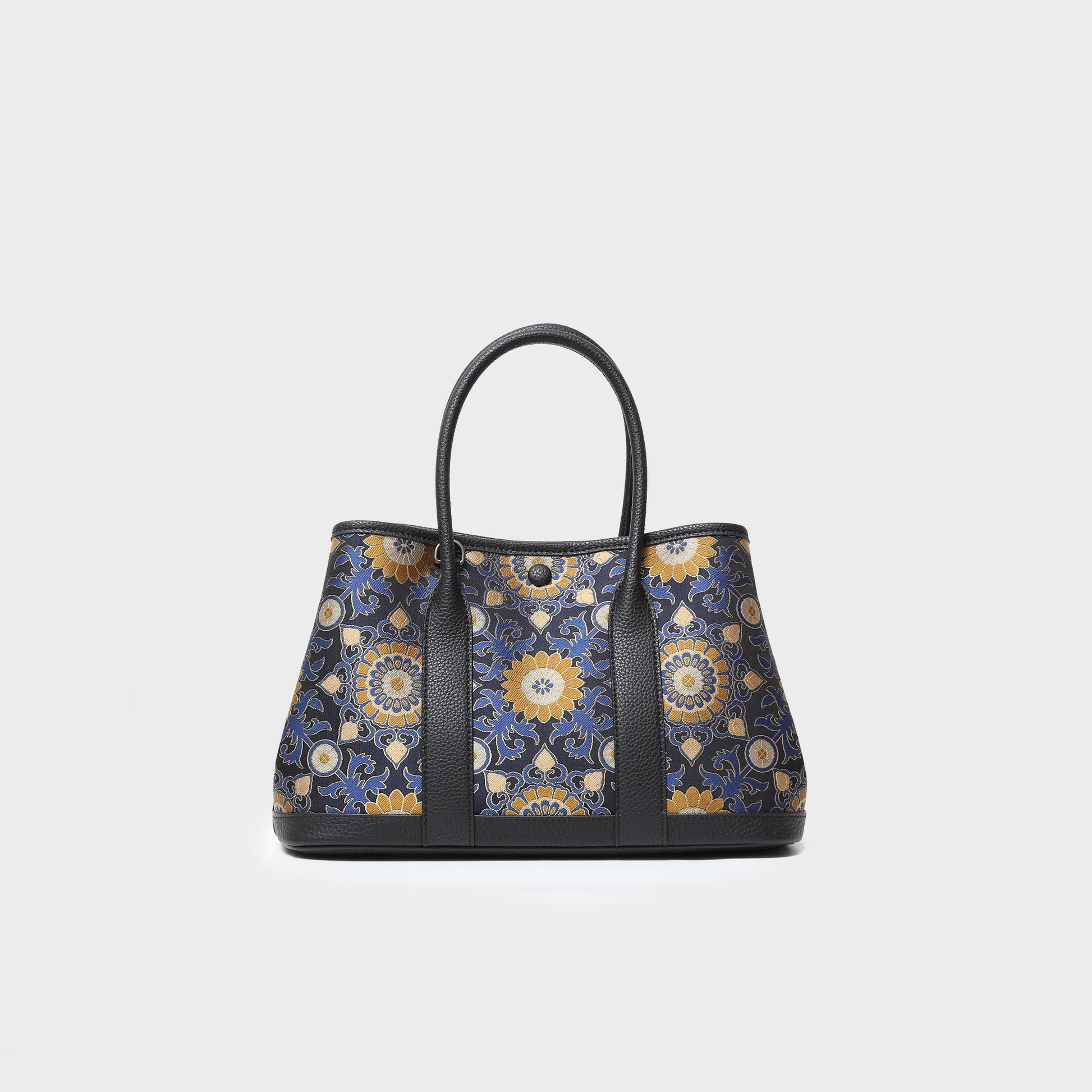 The structured tote silhouette pairs the opulent Song Brocade body with smooth black leather trims and dual top handles, balancing luxury style with daily practicality. The 31.2×14×20cm spacious interior easily fits laptops, luxury wallets and cosmetics, serving as a versatile handbag for office days, luxury banquets and special occasions.